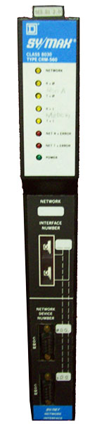 Square D Schneider Sy/Max Sy/Net Class 8030 Type CRM-560 in Stock. The CRM-560 Remote Network Interface Module (RNIM) allows complete monitoring, programming, and control of a network of Sy/Max programmable controller at locations that are inaccessible or impractical for conventional hard wire connections. The CRM-560 allows network communication between widely separated devices which cannot communicate using the standard CRM-510 Network Interface Module (NIM)